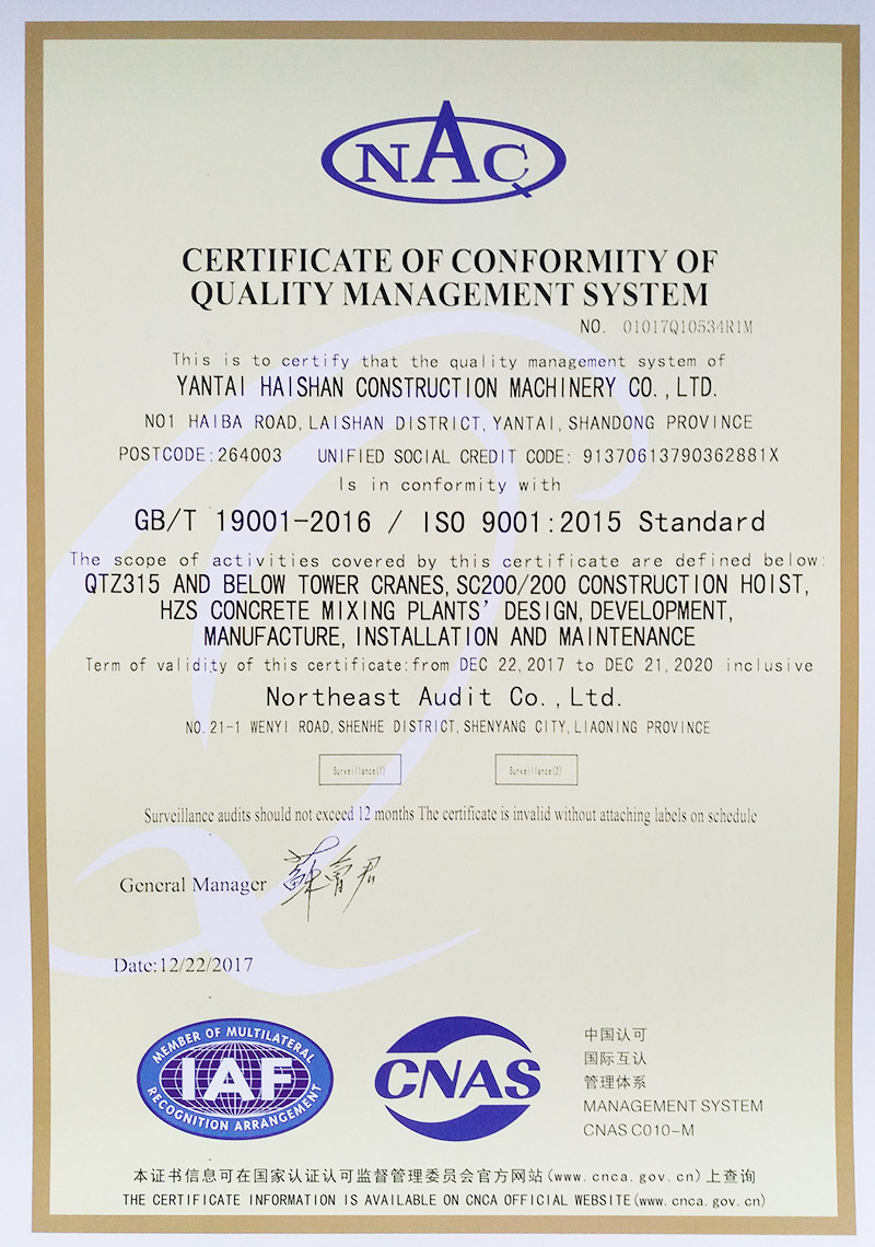 煙臺(tái)海山建筑機(jī)械有限公司坐落于山東省煙臺(tái)市高新技術(shù)開發(fā)區(qū),占地面積160000多平方米,目前擁有1200余名員工。秉承誠(chéng)信·勤奮·執(zhí)著·創(chuàng)新的企業(yè)發(fā)展理念,以人才·質(zhì)量·管理·服務(wù)為企業(yè)發(fā)展途徑...